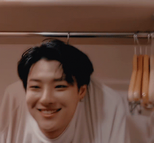 Seungyoun from X1 smiling brightly at the camera, wearing a white shirt.