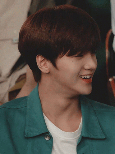 X1's Junho smiles charmingly, wearing a teal jacket and white t-shirt.