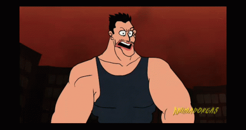 Xandao, the muscular animated character, stands defiantly before a city, followed by a massive explosion.