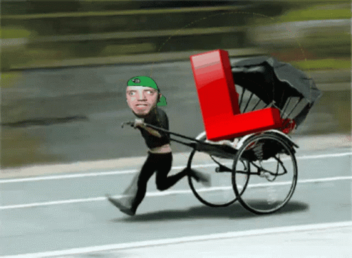 A man in a green hat pulls a rickshaw with a red 'L' on its side, a quirky clip associated with Xbox Series X.