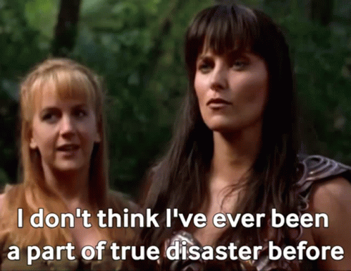 Xena and Gabrielle, played by Lucy Lawless and Renee O'Connor, share a memorable quote about true disaster.