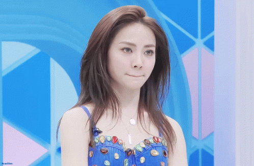 Xie Keyin (Shaking Chloe) in a blue embellished top, looking pensive against a blue background.