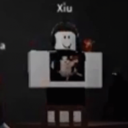 A Roblox character named Xiu, wearing headphones and a smiley face.