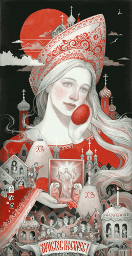 Beautiful illustration celebrating Orthodox Easter with traditional symbols and the greeting 'Christ is Risen!'