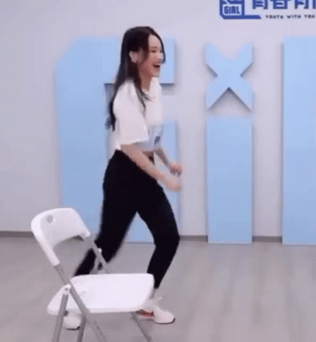 Xu Xinwen performs an energetic high kick, losing her shoe, during a segment for Youth With You 2.