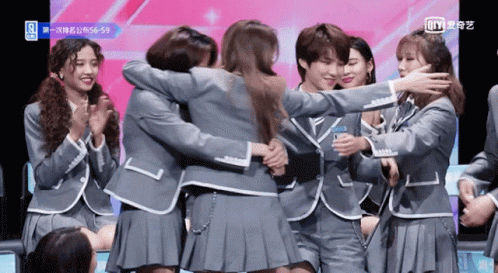 Xu Xinwen, Shaking Chloe Xie Keyin, Wei Shuyu, and Beebee Huang Xiaoyun share an emotional hug on Youth With You 2.