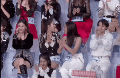 Xu Xinwen and Xie Keyin clapping and reacting enthusiastically, with Liu Yuxin mentioned in captions.