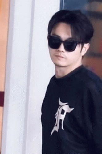 Xukai in sunglasses, wearing a black sweatshirt with an 'F' logo, making a 'shush' gesture.