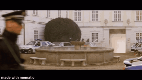 Xander Cage's classic Pontiac GTO from the movie xXx, parked outside a grand building.