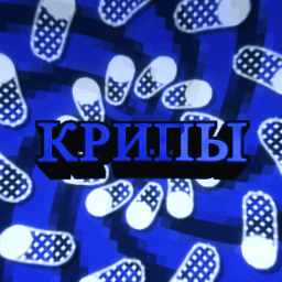A blue background with white pills and the Russian word "КРИПЫ" (Creeps) displayed in black.