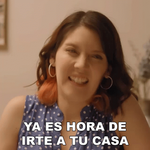 Gabriela Ruiz from EnchufeTV smiles with the text 'Ya Es Hora De Irte A Tu Casa' displayed.
