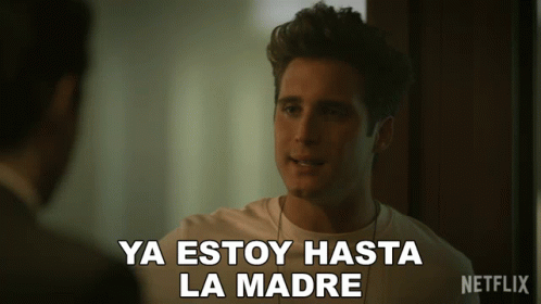 Diego Boneta as Luis Miguel, frustrated and fed up, saying "Ya estoy hasta la madre" from the Netflix series.
