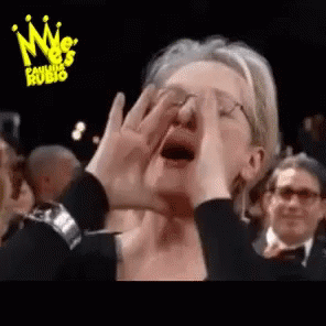 Meryl Streep reacting with a 'Ya Sientese Señora' meme, covering her mouth and shouting.