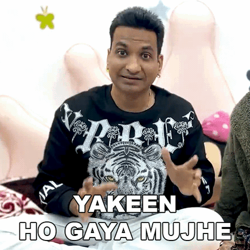Puneet, wearing a black shirt with a tiger, expresses conviction saying 'Yakeen Ho Gaya Mujhe'.