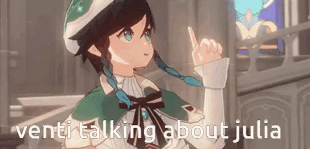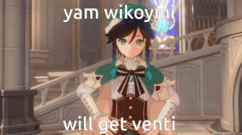 Venti from Genshin Impact winks and points, with the text 'yam wikoymi will get venti' displayed.