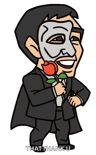 Cartoon of Andrew Yang as Phantom of the Opera, holding a red rose.