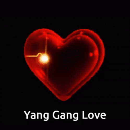 A glowing red heart with a golden heartbeat line, accompanied by the text 'Yang Gang Love'.