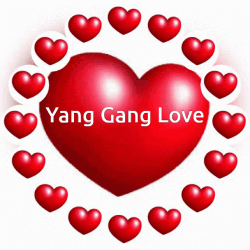 A vibrant red heart graphic with 'Yang Gang Love' text, surrounded by smaller hearts.