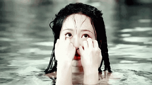 Yangzi from Ashes Of Love emerges from the water, hands near her face, in a captivating scene.