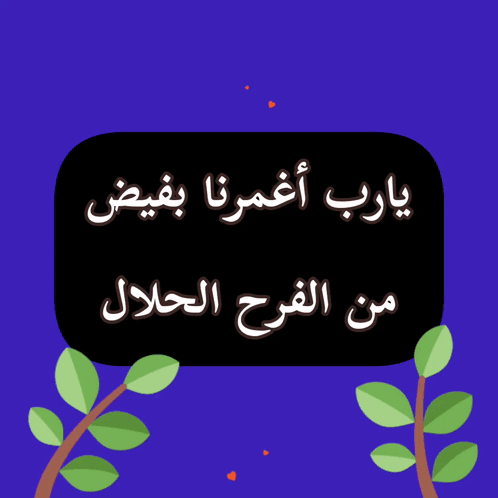 A heartfelt Arabic prayer asking God to immerse us in an abundance of lawful joy, set against a blue background with hearts and leaves.