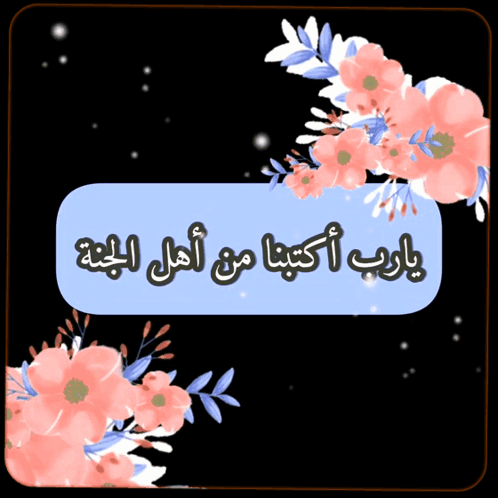 A beautiful image featuring an Arabic prayer for Paradise, adorned with pink and blue floral designs.