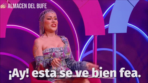 Yari Mejia from La Más Draga reacts to the on-screen caption '¡Ay! esta se ve bien fea.'