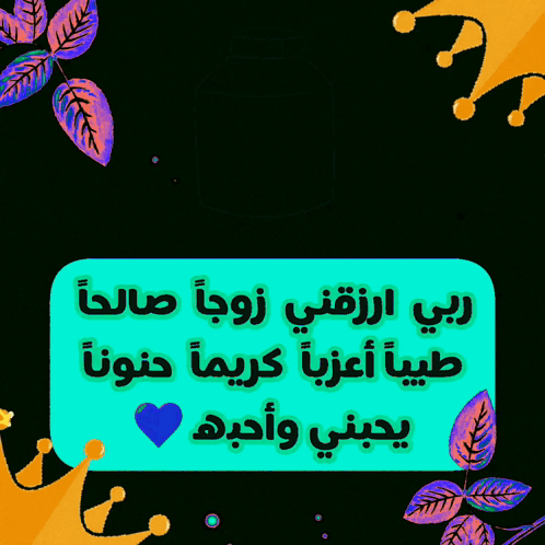 An animated Islamic prayer for a righteous, kind husband and good offspring, featuring glowing hearts and crowns.