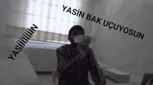 Yasin, wearing a mask, is shown with the Turkish text 'Yasin Bak Uçuyosun' (Yasin, look, you're flying) on screen.