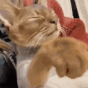 Yaya the cat looks incredibly sleepy and content while being gently petted, enjoying a cozy moment.