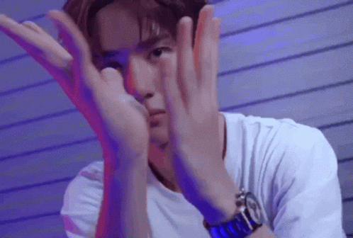 Wang Yibo, wearing a white shirt and a watch, makes a cute heart gesture with his hands.