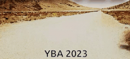 A tumbleweed rolls across a desolate desert road with 'YBA 2023' text, symbolizing a quiet year.
