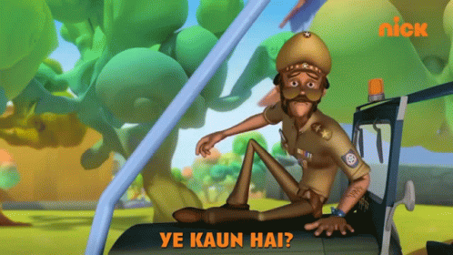 Inspector Chingum from Motu Patlu looks confused and shocked, asking 'Who is this?' in this animated clip.