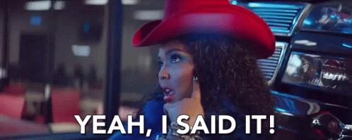 Lizzo in a red cowboy hat, emphatically stating 'Yeah, I said it!' with a confident expression.