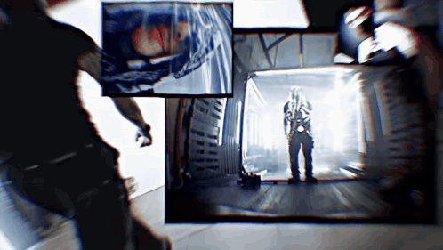 a blurry picture of a man standing in front of a screen