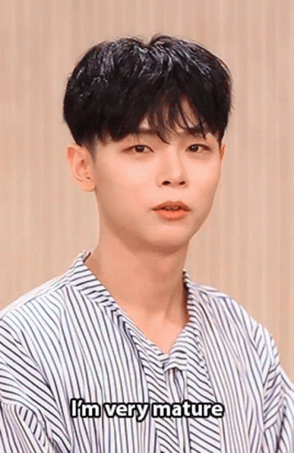 Shin Yechan from Band Lucy says 'I'm very mature' while wearing a striped shirt.