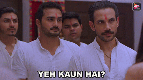 Men in traditional attire ask 'Yeh Kaun Hai?' in a scene from Virgin Bhasskar S2.