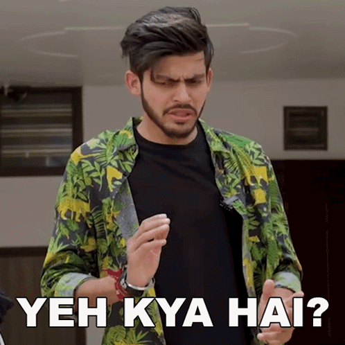 Sumit Bhyan, wearing a green and yellow shirt, reacts with a confused 'Yeh Kya Hai?' (What is this?).