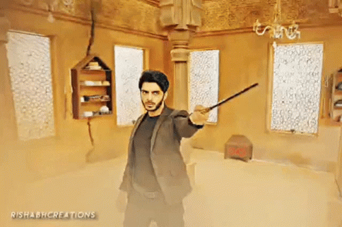 Aman from Yehhjaduhaijinnka, played by Vikram Singh Chauhan, dramatically wields a magic wand in an ornate room.