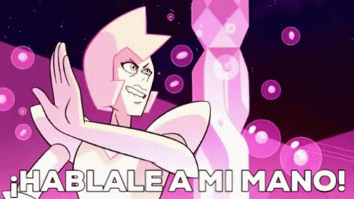 Yellow Diamond from Steven Universe, with the iconic Spanish phrase '¡Hablale a mi mano!' (Talk to my hand!) displayed.