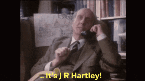 J R Hartley on the phone in the iconic Yellow Pages TV ad, searching for his book on fly fishing.