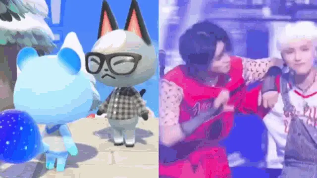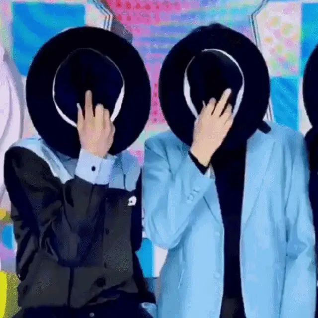 TXT members Yeonjun and Hueningkai share a sweet hand kiss moment, with other members in the background.