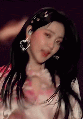 Yeri, with her long dark hair and heart-shaped earrings, gives a captivating, flirtatious gaze to the camera.