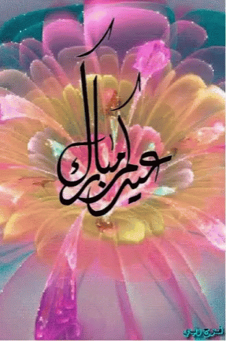 Vibrant floral background with 'Eid Mubarak' in elegant Arabic calligraphy, celebrating the festive occasion.