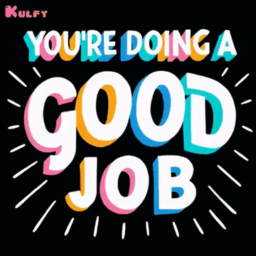 Animated text graphic from Kulfy saying 'YOU'RE DOING A GOOD JOB' with vibrant colors on a black background.