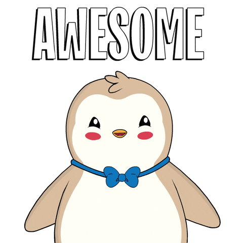 A cute penguin with a blue bow tie waves, with the word 'AWESOME' displayed above its head.
