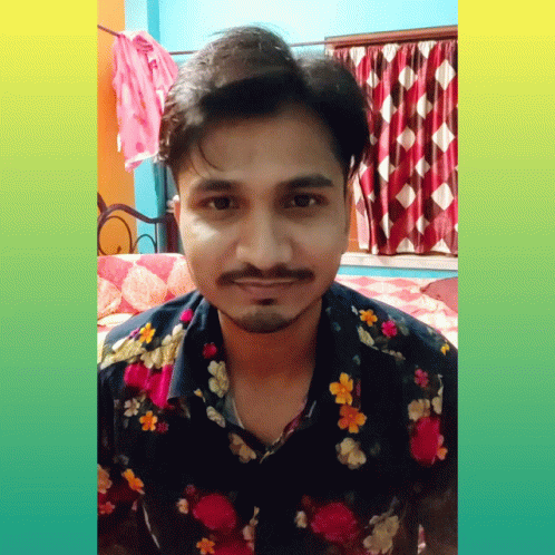 Satyajit Malakar, wearing a floral shirt, looks at the camera in this popular 'Yes Yeah' reaction meme.