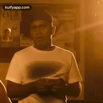 Aju Varghese from Ohm Shanthi Oshaana reacts with a 'yes' while holding a phone.