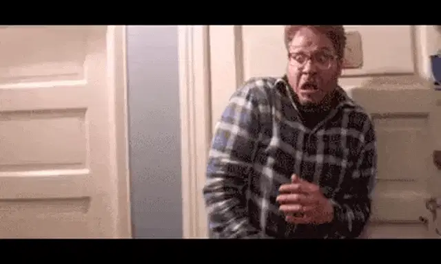 A man, possibly Ali Al-Bloushi, reacts with fear, exclaiming 'Oh my God, it's scary'.