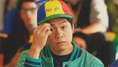 Yo Yo Santos (Tobit Raphael) from The Internship, wearing his iconic 'Noogle' hat with a confused expression.