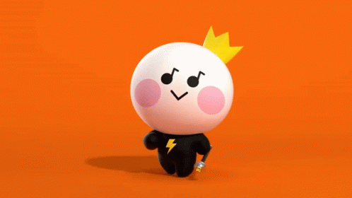 Cute TRUZ character Yochi marches happily with a crown and magic wand against an orange background.